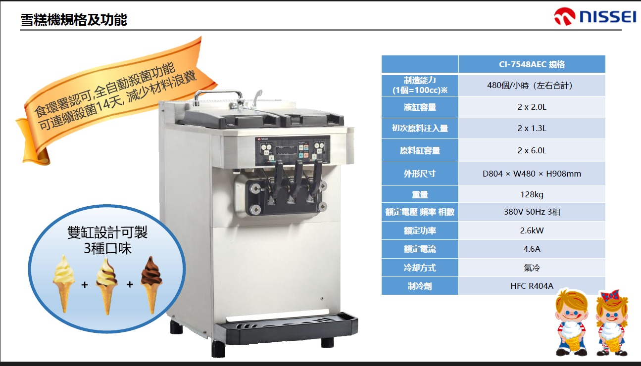 主要規格(NISSEI CI-7548AEC 三頭軟雪糕機)